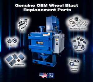 Replacement Parts and Support: We provide original wheel blast parts for all our product lines, ensuring minimal machine downtime. We also offer quality aftermarket parts for other brands, such as Goff, Coyote, Pangborn, Wheelabrator, Viking, and Bronco. Our OEM parts ensure proper fit, high-quality materials, and design enhancements.- Technological Innovation: Gibson incorporates modern technologies such as robotics, IOT, and HMI digital controls into our wheel blast systems.
